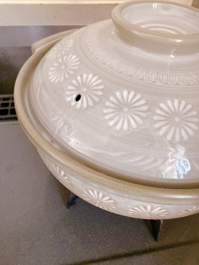 強火にかけて、ふつふつと穴から湯気が出てきたら、弱火にして10分。